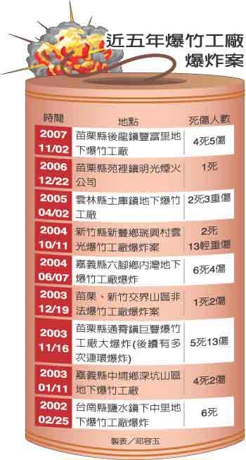 台湾地区近五年爆竹工厂爆炸案 《联合报》图