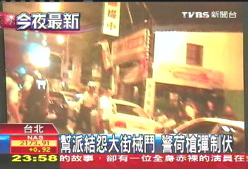 《古惑仔》现实版 台北市帮派当街械斗被警察制伏(图片来源:台湾TVBS电视台)