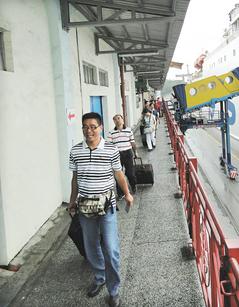 中远之星前天(21日)傍晚6时从厦门出发,原订昨日上午7时抵达基隆港,但因海上风力可达10级,巨浪滔天,致航速减缓,昨天近中午时才到达,12时下船。虽然经过一夜的海上颠簸,大陆游客却大多是精神奕奕。来自江西省旅行团的旅客表示,这是她第一次坐这么久的船,因海浪太大,她吐了6次,但下船后感觉很好。