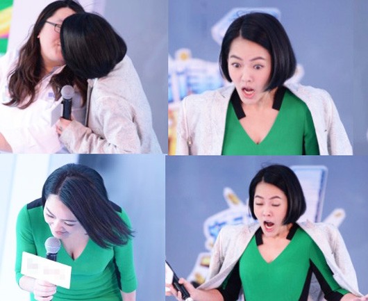 据报道,受胖达人事件影响,小S也遭到检方约谈,约谈后除了《康熙》录像外,鲜少露面。19日小S为代言厂牌站台现身北京,主持活动时仍相当敬业,卖力与观众互动,还假装强吻女性工作人员,现场气氛相当热络。