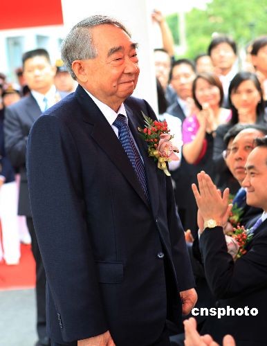 10月11日,台湾航运巨贾、长荣集团总裁张荣发,在上海出席长荣集团大陆营运总部启用仪式。 中新社发 潘索菲 摄
