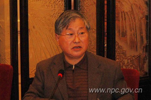 4月27日下午,十一届全国人大常委会第十四次会议分组审议石油天然气管道保护法草案,全国人大常委会执法检查组关于检查《中华人民共和国台湾同胞投资保护法》实施情况的报告。图为全国人大常委会委员汪光焘在分组会上发言。(中国人大网 唐志强摄)