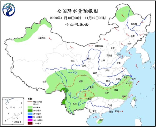 19日08时至20日08时,南疆西部、西藏东部、青海南部、川西高原北部、甘肃南部、陕西西南部、内蒙古东北部、黑龙江西北部、湖北南部、江淮中南部等地有小到中雪(雨)或雨夹雪,其中,川西高原西北部的局部地区有大雪;贵州中西部的部分地区有冻雨;江南大部、广西北部、西南地区大部等地有小到中雨或阵雨。新疆北部、内蒙古大部、东北等地有4~6级风。东海南部海域、台湾海峡、台湾以东洋面和以南海域、南海北部、中部和西南部海域将有7~8级东北风、阵风可达9~10级;北部湾将有6~7级、阵风8级的东北风。