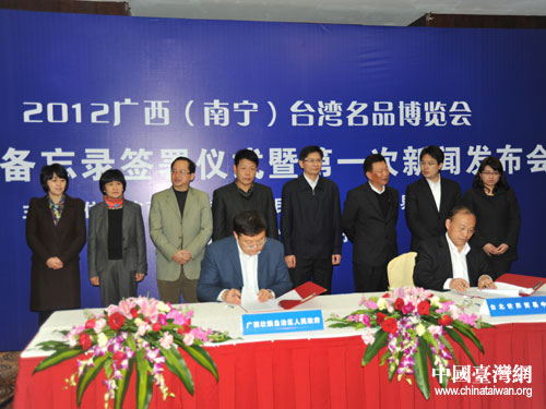2012广西(南宁)台湾名品博览会合作备忘录签署仪式。图片来源:南宁台办