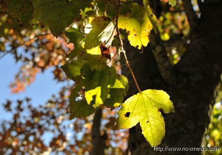 收费站旁的枫香,今年也不够红,但有时黄绿色的也挺有味道的