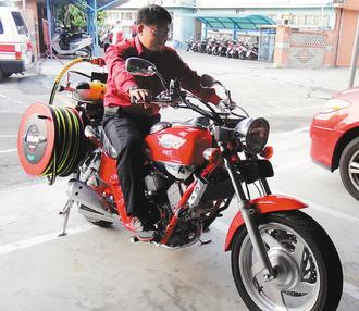 这款消防摩托车含配备造价80万元新台币,被队员称为“红旋风”。 (图片来自台湾媒体)