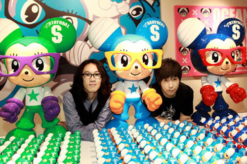 阿信与其高中同学及目前的合作伙伴不二良一起在“一克拉的梦想”展上,这个展览由他俩共同完成。
