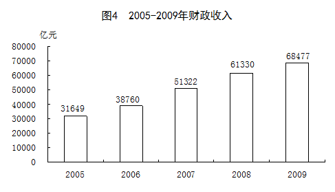全年财政收入68477亿元,比上年增加7147亿元,增长11.7%;其中税收收入59515亿元,增加5291亿元,增长9.8%。