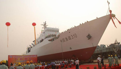中国渔政310船在广东湛江隆重下水。