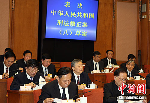 十一届全国人大常委会第十九次会议25日下午经表决,通过了刑法修正案(八)。此次刑法修改的重点之一是取消了近年来较少适用或基本未适用的13个经济性非暴力犯罪的死刑。