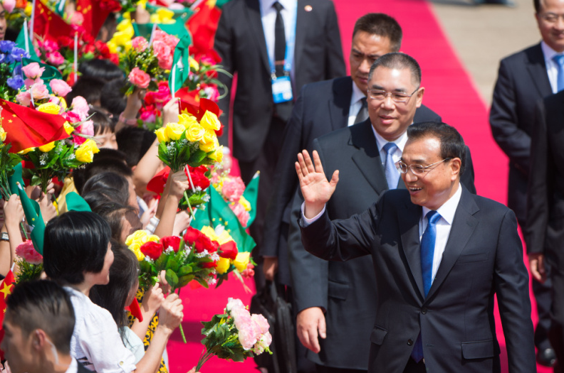 【澳门铺开红地毯:鲜花乐队盛迎李克强】10月10日11时28分,李克强总理踏上了澳门土地,这是他首次视察澳门。澳门特区行政长官崔世安登机迎请总理。机场铺开红地毯,乐队奏响欢迎乐曲,200名澳门儿童手举鲜花、五星红旗和澳门特区区旗,与澳门特区政府主要官员一道,盛迎李克强总理莅临澳门。