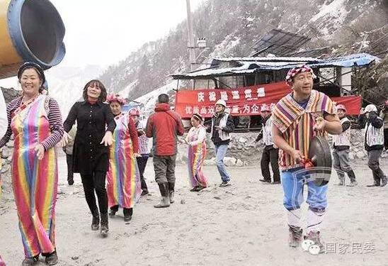 独龙江公路隧道贯通,独龙族群众载歌载舞欢庆。