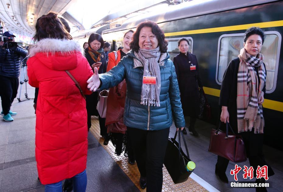 3月2日清晨,出席十二届全国人大五次会议的黑龙江代表团乘火车抵达北京,成为首批抵京的京外代表。 中新社记者 刘震 摄