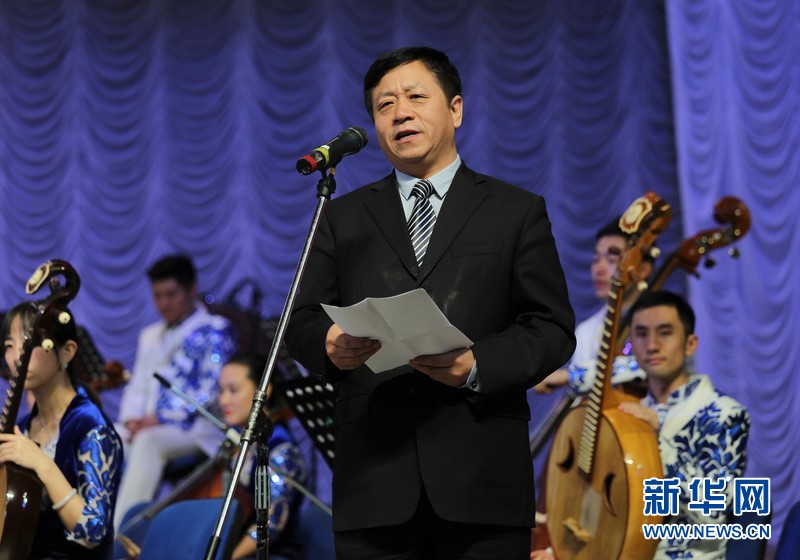 2017年“欢乐春节”暨中国哈萨克斯坦建交25周年音乐会10日晚在哈首都阿斯塔纳举行。图为中国驻哈萨克斯坦大使张汉晖在音乐会上致辞。新华网发(奥斯帕诺夫摄)