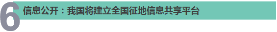 为进一步推动征地信息公开工作,我国将建立全国征地信息共享平台,以充分维护人民群众切身利益。今年5月以来,5个省(区)35个县(市、区)开展了基层征地补偿政务公开标准化规范化试点工作。国土资源部将会同有关省级国土资源部门加强指导,结合征地信息公开工作的有关要求,将试点成果向全国推广。