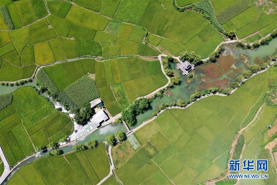 贵州省安顺市鲍家屯周围的稻田和水利工程(8月25日摄,无人机照片)。新华社记者 刘续 摄