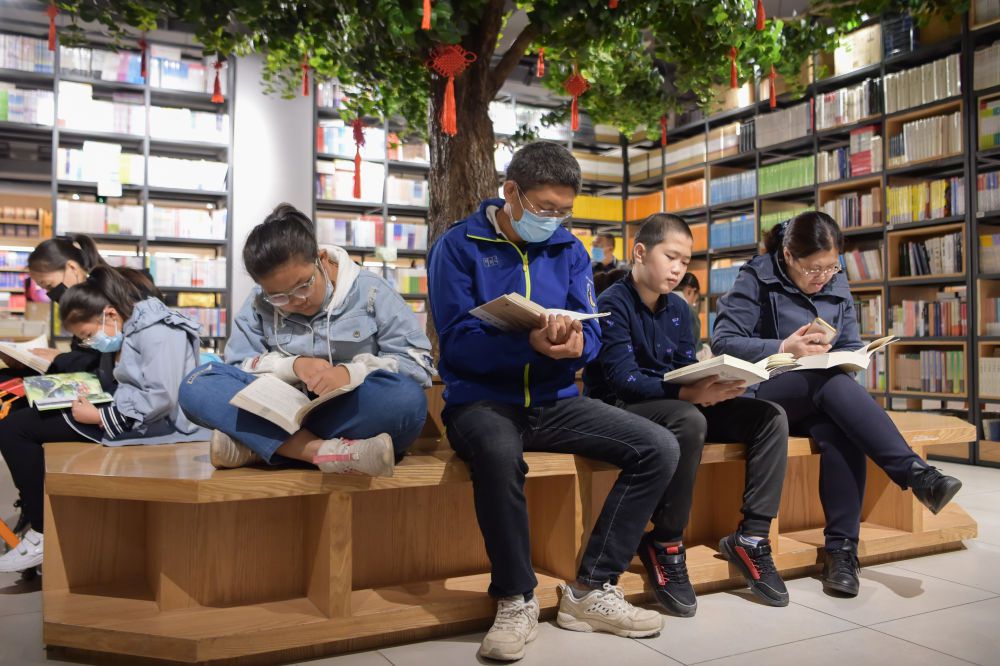 ↑10月5日,读者在呼和浩特市青城阅立方书店读书。新华社记者 李志鹏 摄
