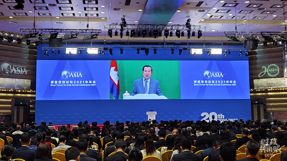 △印尼总统佐科、韩国总统文在寅、柬埔寨首相洪森应邀以视频方式出席年会。(总台央视记者胡玮拍摄)