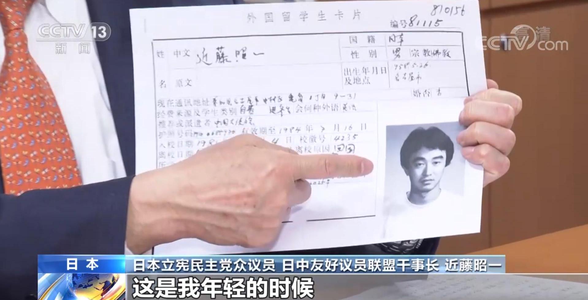 日本立宪民主党众议员、日中友好议员联盟干事长 近藤昭一:这是我年轻的时候,这是在我毕业多年之后去参加校友会的时候找到的。我就读的是北京语言学院,现在已经是北京语言大学了,我参加北京语言大学校友会的时候,提到我当时留学时候的学生卡还被保存着,所以复印给我留念。我留学的时候就认识到中国是拥有悠久历史的文明古国,但是我1981年开始在中国留学的时候,当时有车的人很少,现在很多中国人都开着自己的汽车,这些年来中国的经济发展令人印象深刻,人民的生活变得富足。
