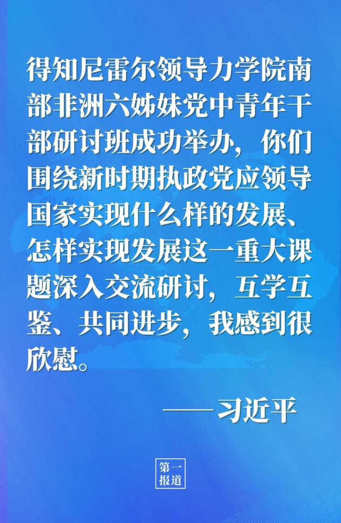 中共中央总书记习近平6月8日给尼雷尔领导力学院南部非洲六姊妹党中青年干部研讨班全体学员回信。