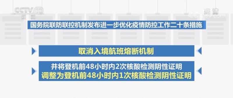 央视网消息:国务院联防联控机制11月11日发布《关于进一步优化新冠肺炎疫情防控措施 科学精准做好防控工作的通知》,通知明确了进一步优化防控工作的二十条措施。对于入境航班和人员管理方面,进一步优化疫情防控工作二十条措施也做了调整。