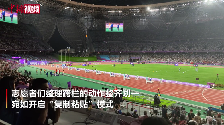 【杭州亚运会】开启“复制粘贴”模式 志愿者整齐划一整理跨栏