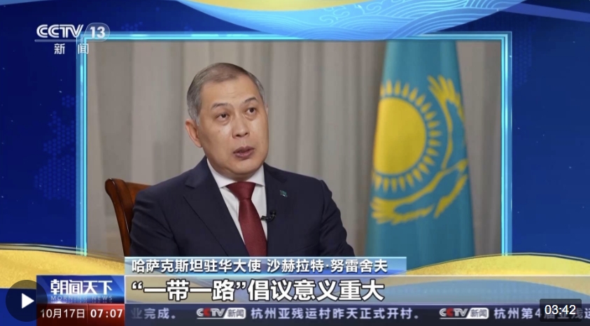 哈萨克斯坦驻华大使 沙赫拉特·努雷舍夫:“一带一路”倡议十年前提出,继而成为发展和实施的典范。我相信,即将举行的论坛将为“一带一路”合作注入新的动力。