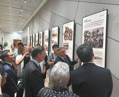 中美嘉宾在湖南长沙博物馆参观飞虎队主题历史图片展。