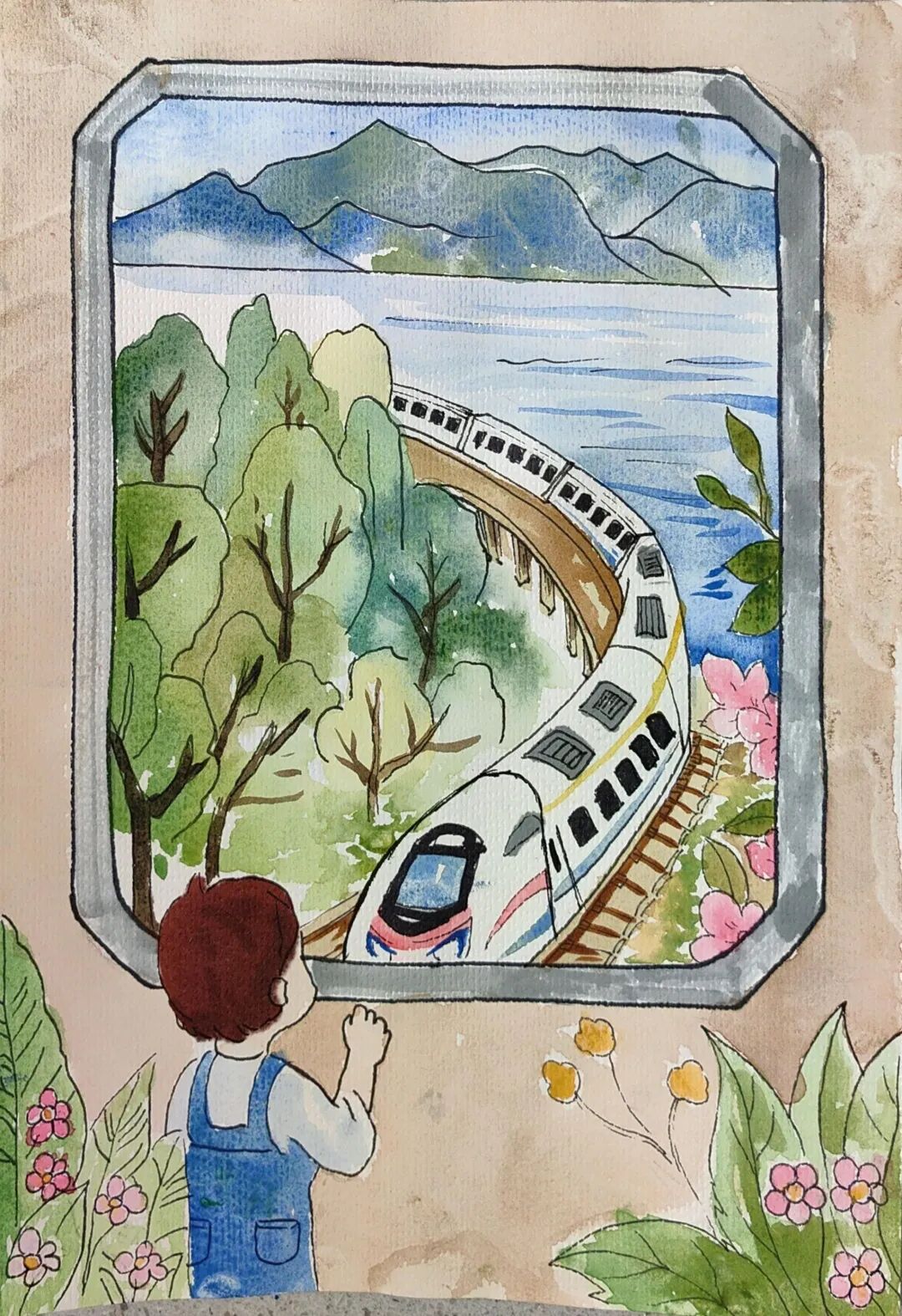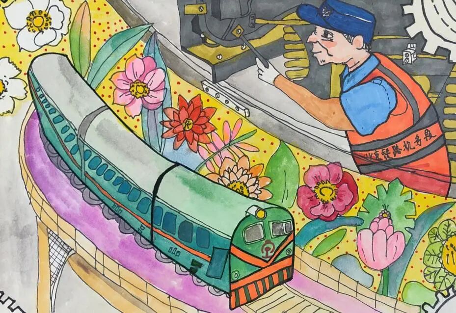 晨雾未散时,我总爱站在泰山站的天桥上看钢轨。那些泛着冷光的钢轨向远方延伸,像被风吹直的绸带,消失在青灰色的剪影里。站台上方“泰山站”三个红字非常醒目,和祖父制服上的路徽是同一种颜色。