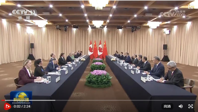 习近平指出,今年是中加建交55周年和建立战略伙伴关系20周年。在双方共同努力下,中加关系呈现恢复向好发展态势,这符合两国共同利益。中方重视加方愿以务实、建设性方式推动两国关系改善发展的表态,愿同加方一道努力,以这次会见为契机,推动中加关系早日回到健康、稳定、可持续的正确轨道,更好造福两国人民。