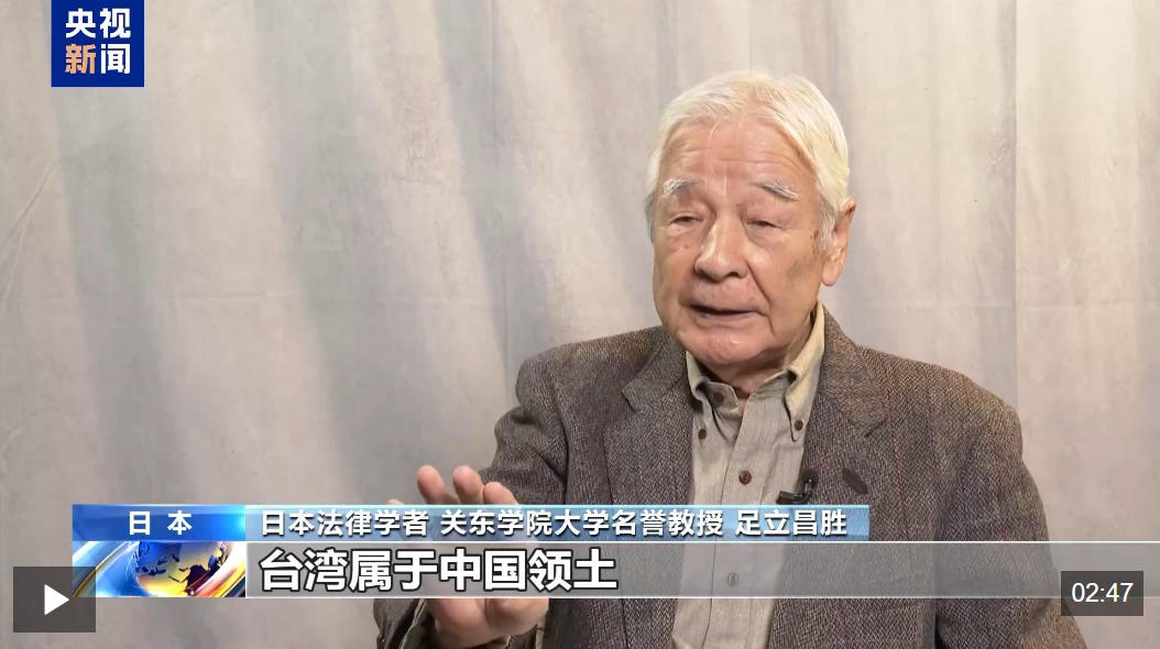 日本法律学者、关东学院大学名誉教授 足立昌胜:按照一个中国原则,台湾属于中国领土,那么台湾发生什么,与日本无关。高市宣称“台湾有事”可能构成日本“存亡危机事态”,这就完全背离了《中日联合声明》的精神,这当然不行。所以她被指干涉中国内政,我认为确实如此。首相的国会答辩非常有分量,它会以文字记录下来,永远存在,无论她以后如何辩解,都是诡辩,因此她应该果断撤回。