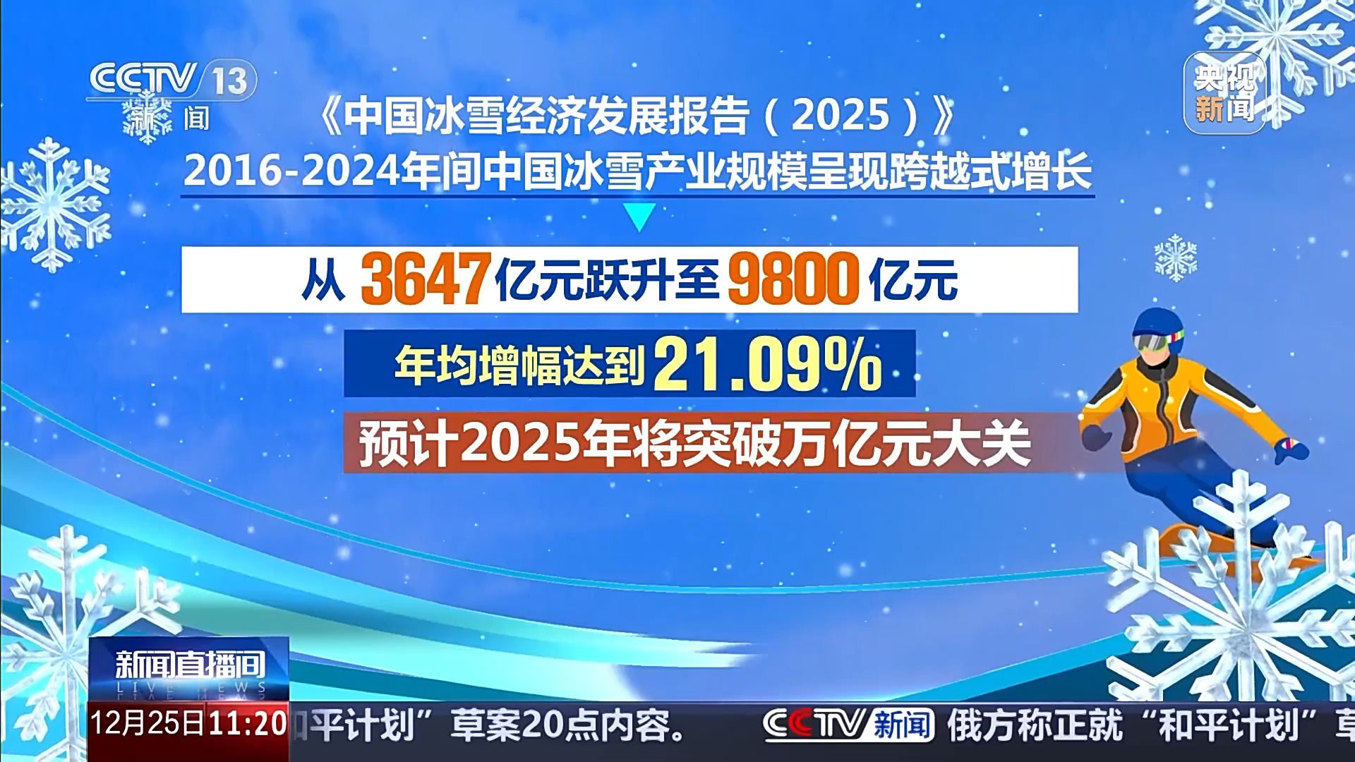 《中国冰雪经济发展报告(2025)》显示,2016—2024年间中国冰雪产业规模呈现跨越式增长,从3647亿元跃升至9800亿元,年均增幅达到21.09%,预计2025年将突破万亿元大关。