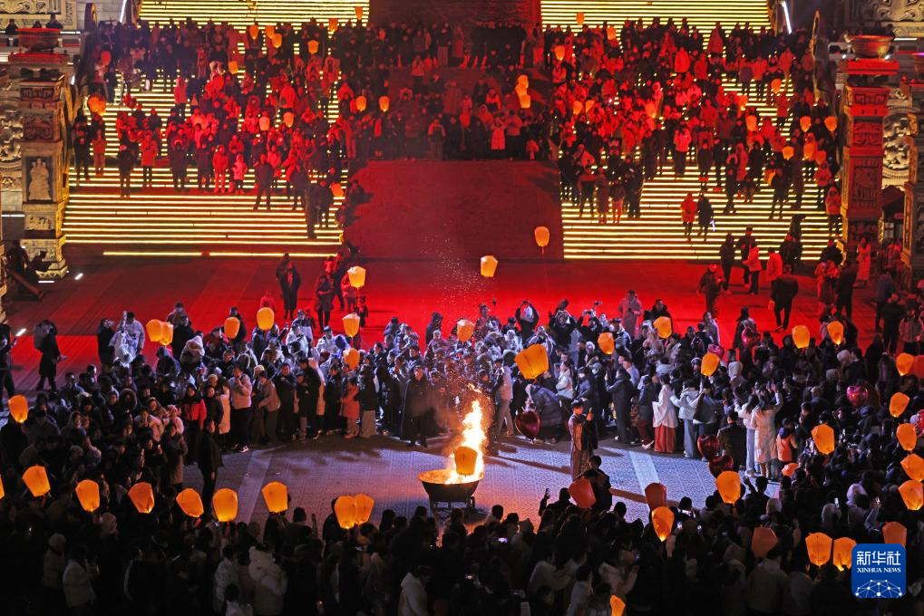 1月1日,游客在河南省洛阳市隋唐洛阳城国家遗址公园内欣赏演出。