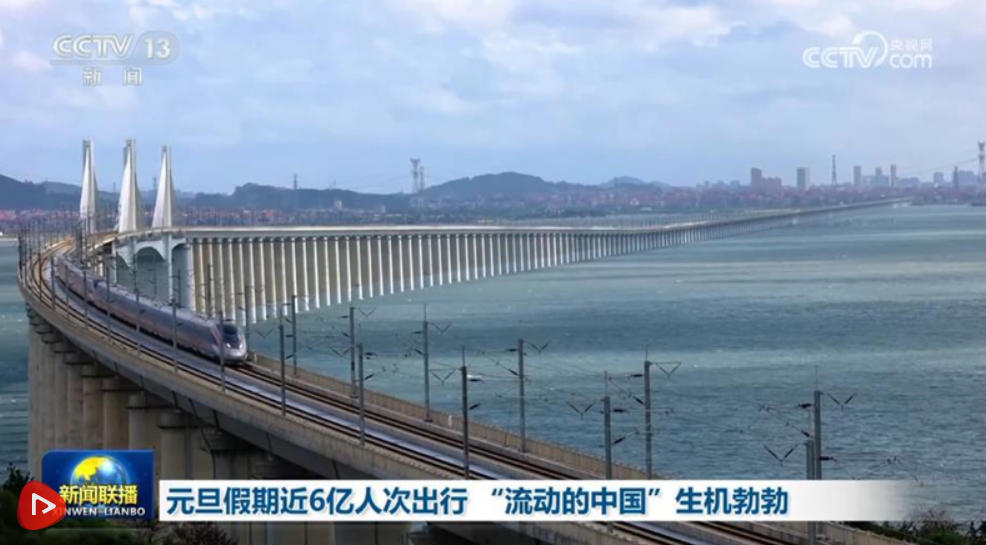 央视网消息(新闻联播):交通运输部1月4日发布的数据显示:今年元旦假期,全社会跨区域人员流动量近6亿人次,“流动的中国”不断释放消费和发展的活力。