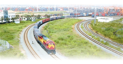 满载集装箱的班列驶离广西钦州铁路集装箱中心站。新华社记者 张爱林摄
