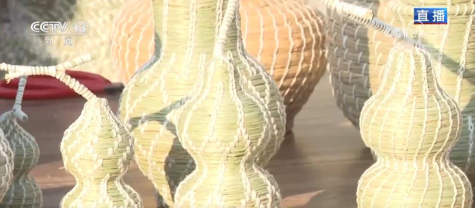 现在在黄岗镇黄河大集不仅能吃美食、买东西,这里还成为了集民俗体验与非遗传承于一体的综合性市集。在这里,不仅能感受到浓厚的市井烟火气,也能来一场沉浸式的文化体验。除了锣鼓表演,在大集上也有不少手工艺的摊位。看这个是单县草编,制作者双手上下翻飞,做成这种花瓶、葫芦、小筐,既实用又美观。新年要到了,再看这个是单县剪纸,一把剪刀、一张红纸、一双巧手,一只小马就活灵活现展示在大家面前了,真的是惟妙惟肖。