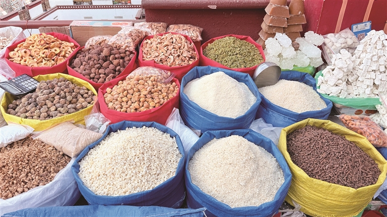 作为拉萨市民熟知的年货采购地,八廓商城已连续多年举办年货节。2026年的年货节以免费摊位为契机,以丰富年货为载体,将消费者与商户紧密联结在一起。商城对240个摊位进行了精细化划分,依据商品种类设置对联、羊头、酥油花、青稞草、糖果、坚果等专区,从一楼到三楼有序分布,形成一条琳琅满目的年货 “长廊”,让市民能快速找到心仪商品。