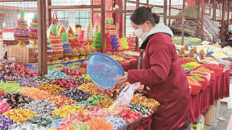 拉萨城投资产运营管理有限公司市场部部长平措次仁介绍,今年的240个摊位全部通过公平抽签的方式分配,目的就是搭建便捷、实惠的采购平台。截至目前,大部分商户已顺利入驻,仅有糖果、青稞苗等少数品类的商贩还在陆续进场,欢迎消费者前往选购心仪年货。