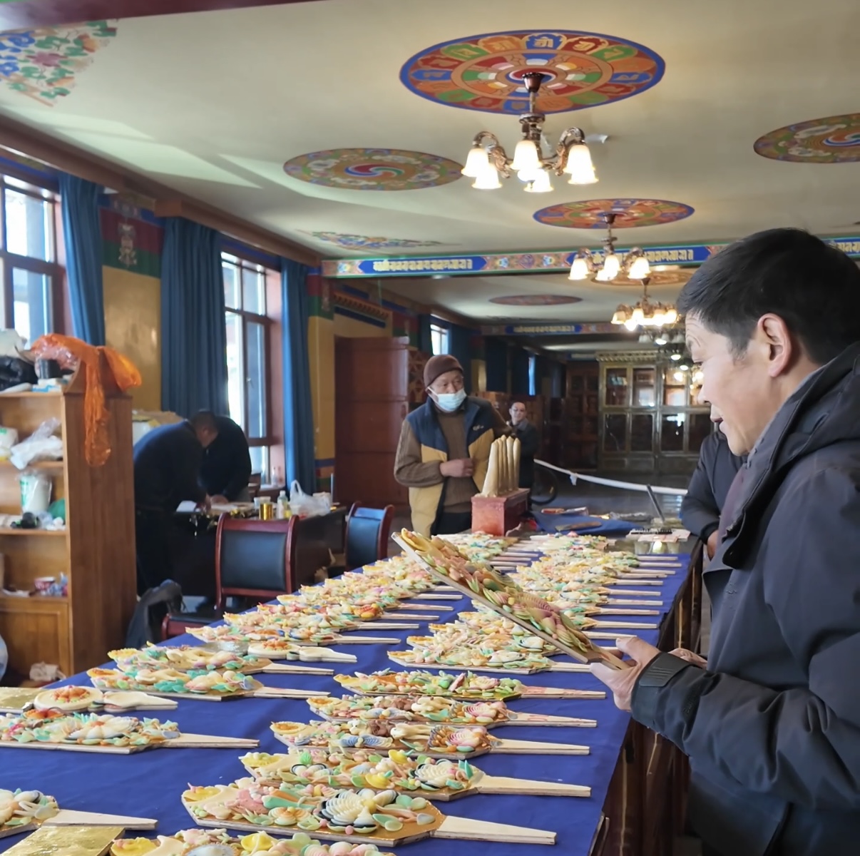 一方酥油花,既是佳节中亮眼的点缀,也承载着家庭对新岁的祝福。