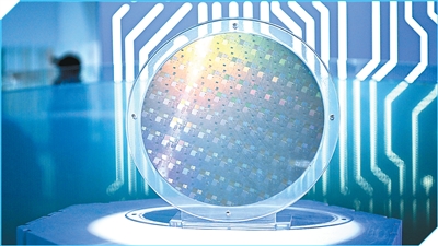 广东广州,粤芯半导体技术股份有限公司展示的晶圆。