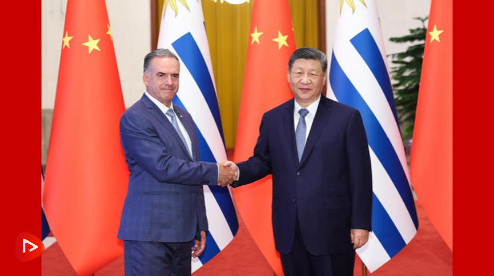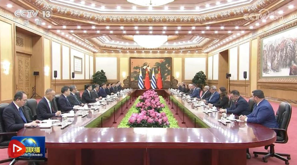 习近平指出,当今世界正处于百年未有之大变局,国际形势变乱交织,单边霸凌愈演愈烈,中方支持乌拉圭接任“77国集团和中国”轮值主席国,愿与乌方加强全球南方团结协作,共同推进平等有序的世界多极化、普惠包容的经济全球化,携手并进、共谋发展,为构建人类命运共同体作出更大贡献。中方始终重视中拉关系,支持拉美和加勒比国家维护自身主权、安全、发展利益,支持乌拉圭接任拉美和加勒比国家共同体以及南方共同市场轮值主席国,愿同乌方和地区国家推动共建中拉命运共同体走深走实。