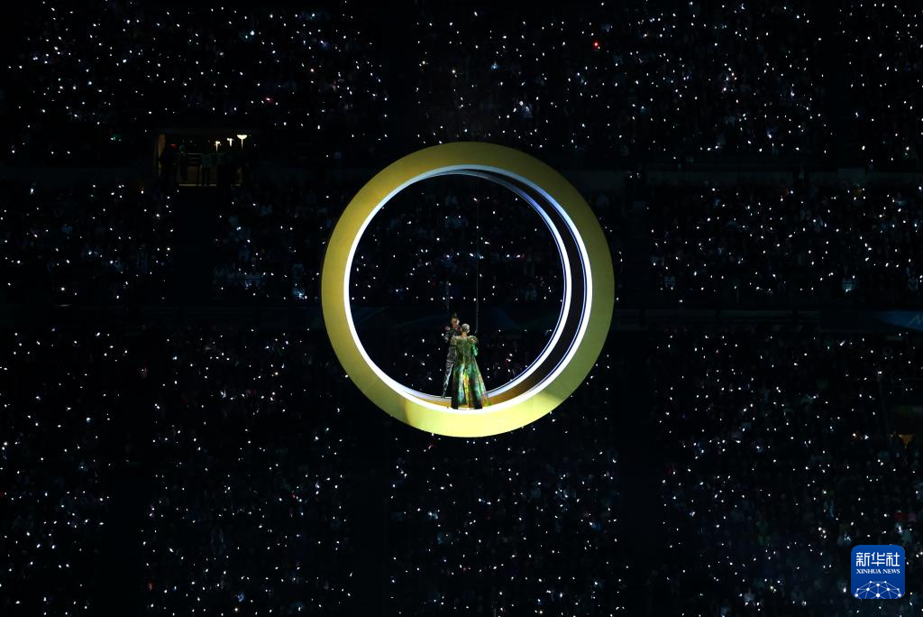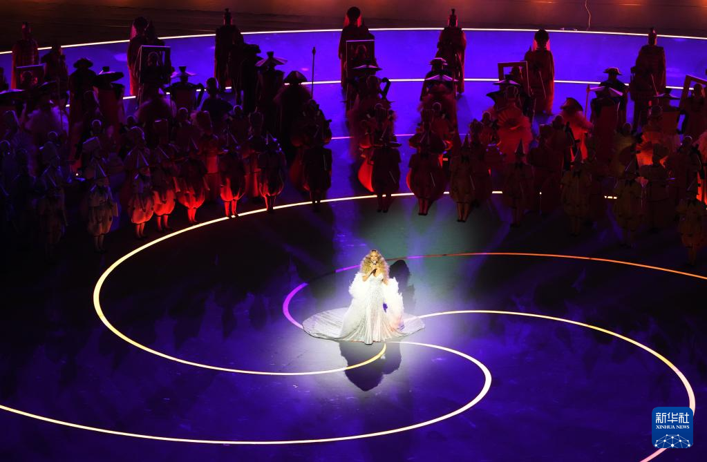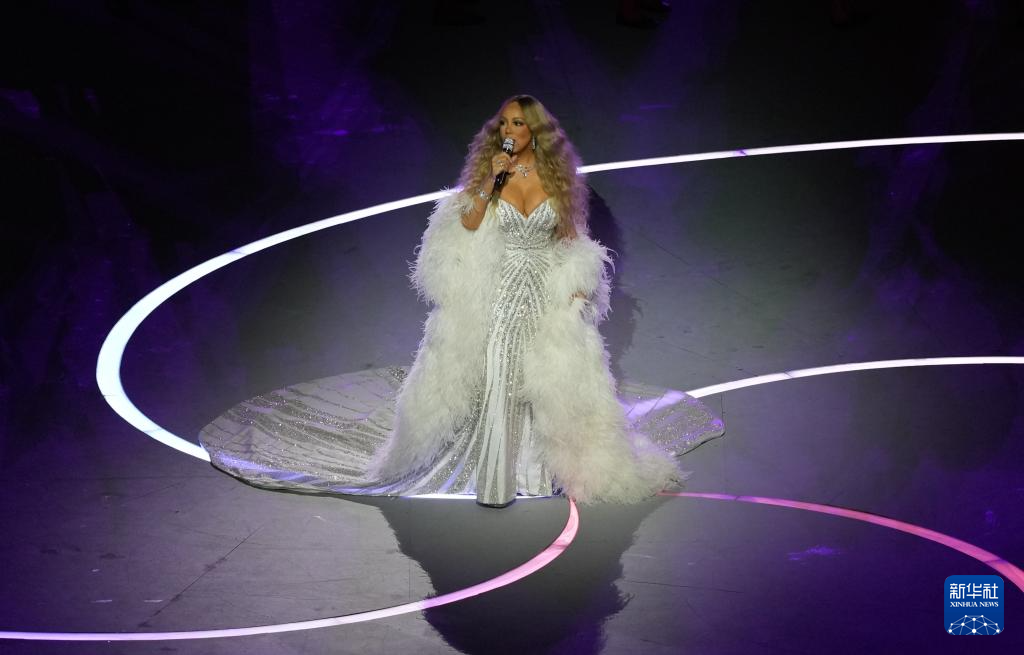 2月6日,歌手玛丽亚·凯莉在开幕式现场表演。