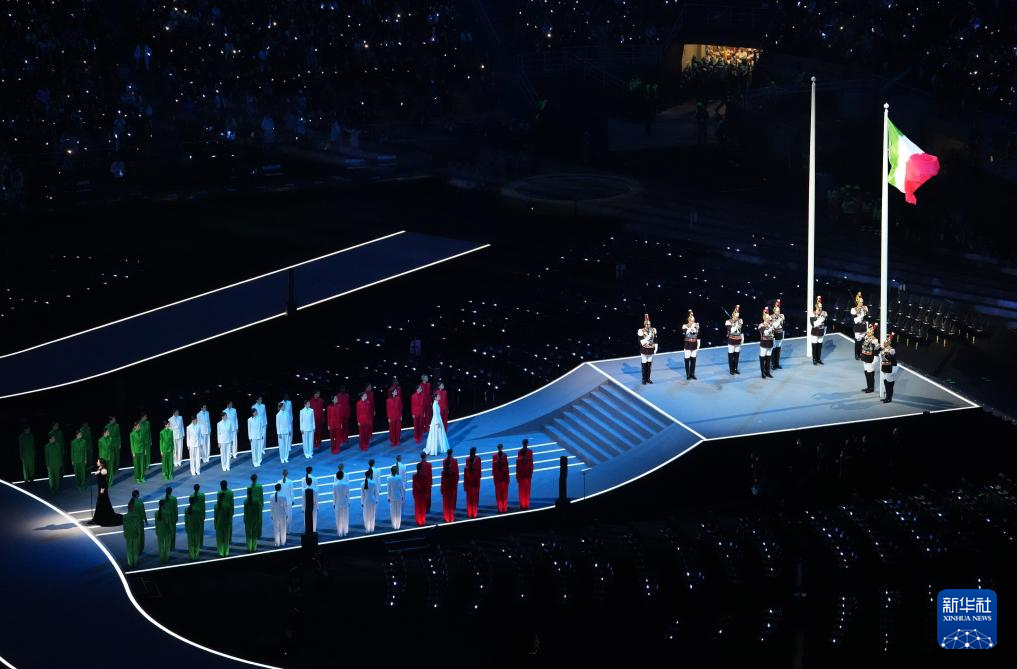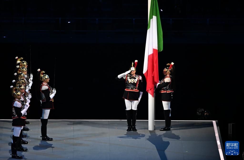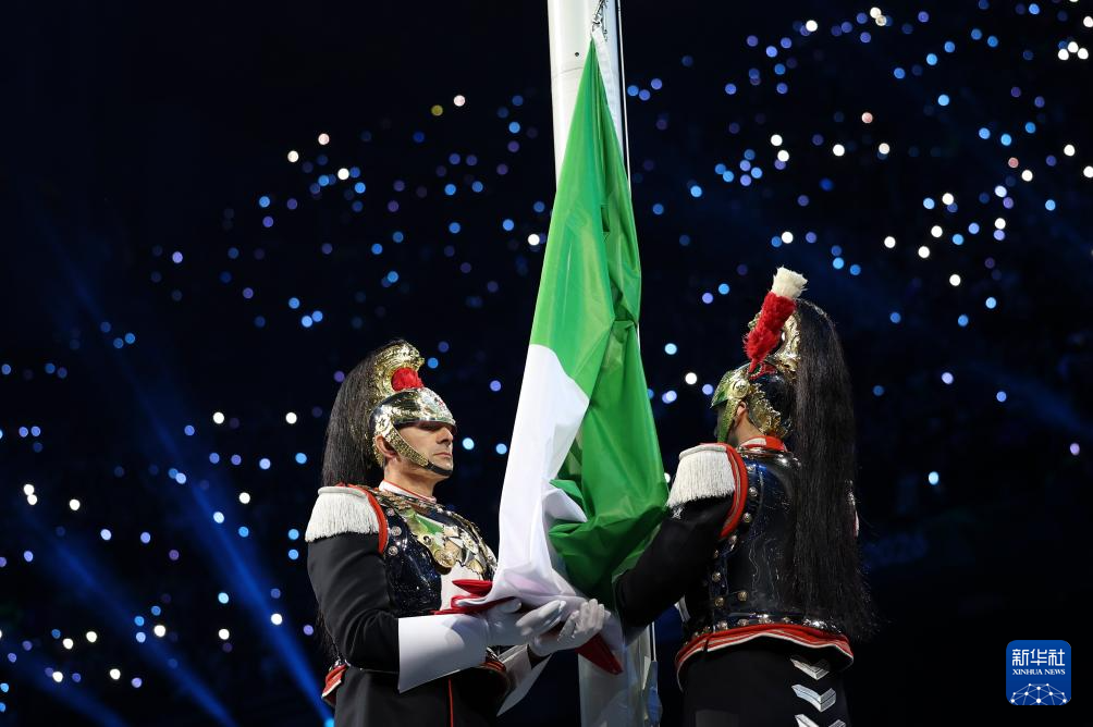 2月6日,意大利国旗在开幕式上升起。