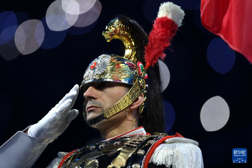 2月6日,一名仪仗队成员在开幕式上。
