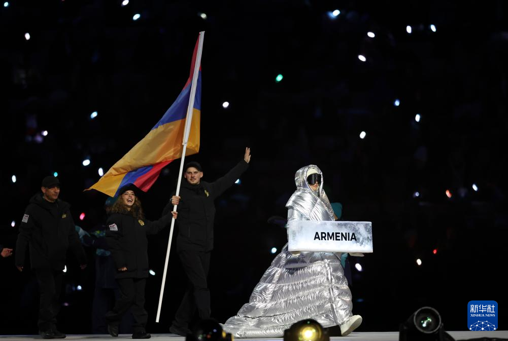 2月6日,亚美尼亚代表团在开幕式上入场。