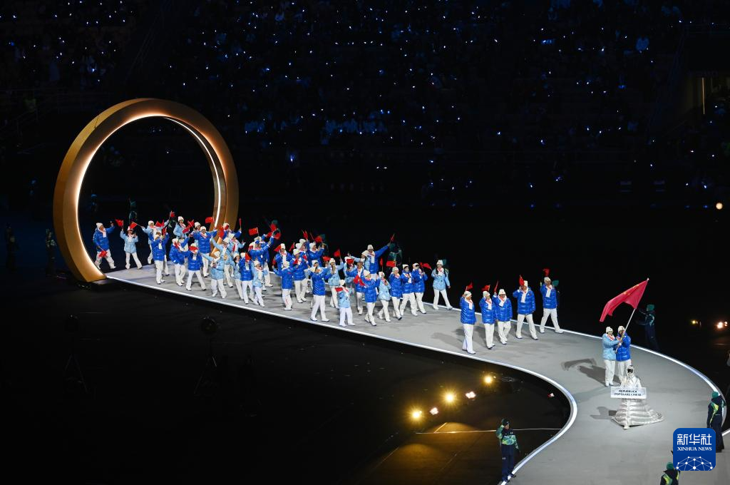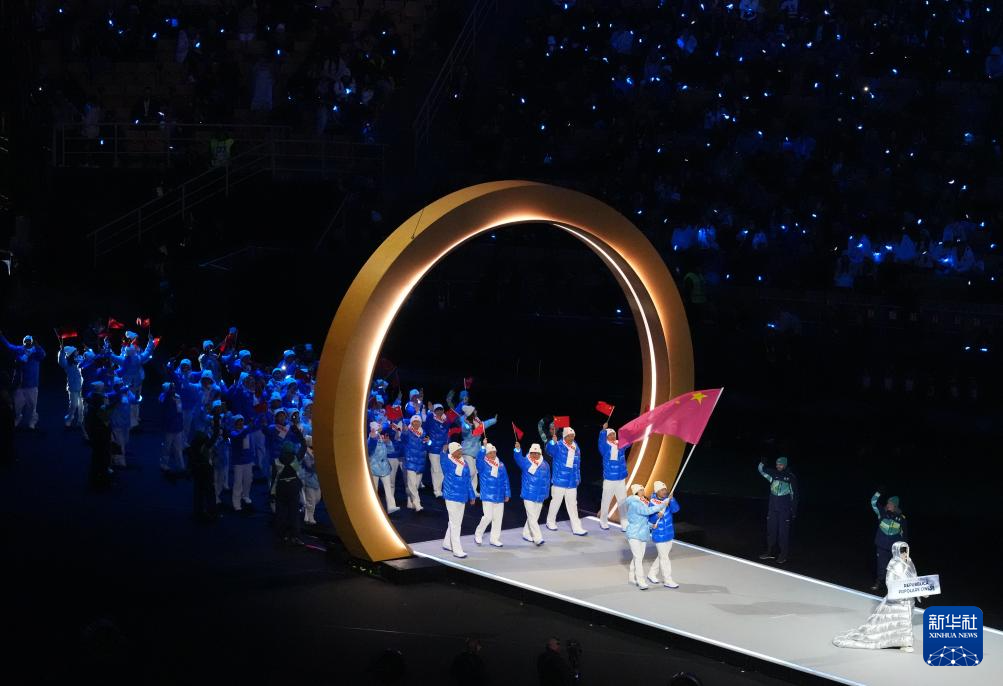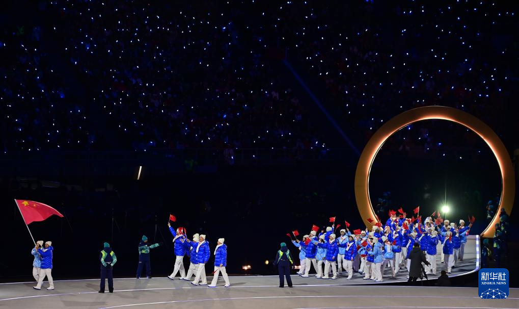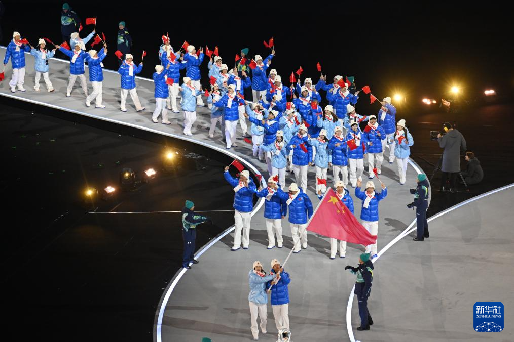 2月6日,中国体育代表团在开幕式上入场。