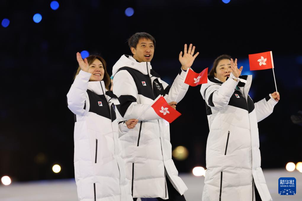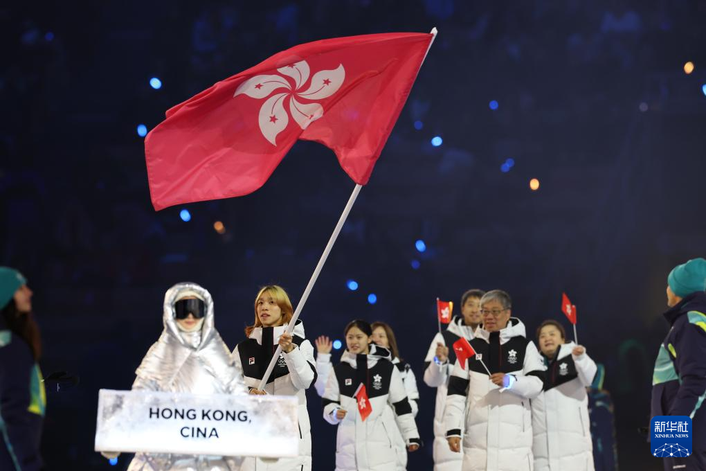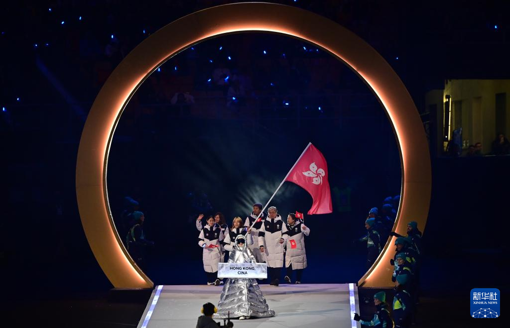 2月6日,中国香港代表团在开幕式上入场。