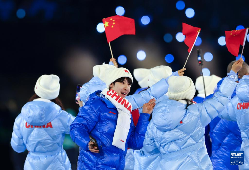 2月6日,中国体育代表团、瑞典体育代表团在开幕式现场。