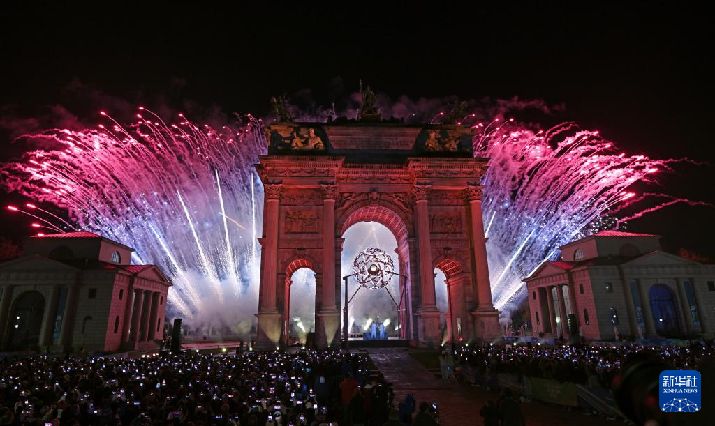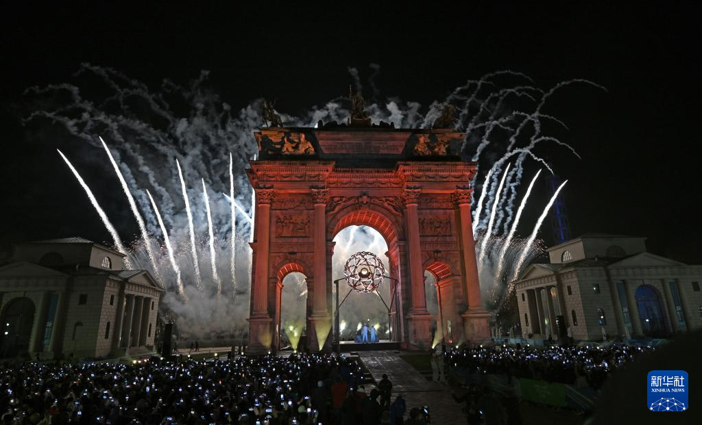 2月6日,在米兰和平拱门,主火炬被点燃。