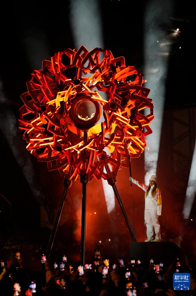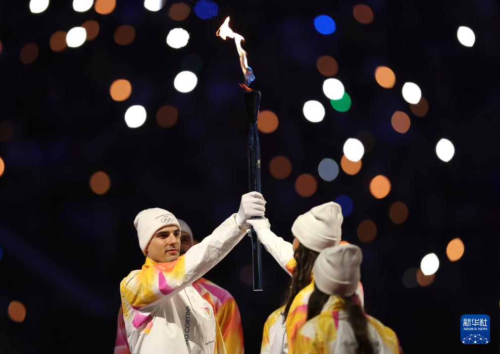 2月6日,在科尔蒂纳迪博纳广场,火炬手点燃主火炬。